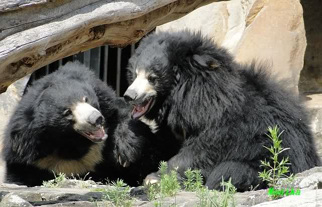 Devis Eltern, die Lippenbären Jürgen und Sutra, hatten heute viel Spaß miteinander. Es gab mal keinen Zoff. Sie haben herrlich miteinander gebalgt. So habe ich sie auch noch nie gesehen.
