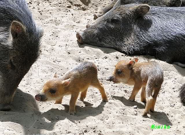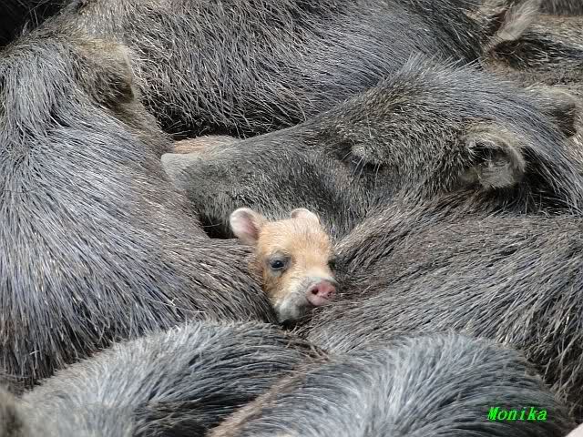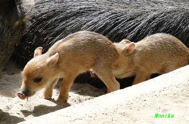 Nachwuchs bei den Pekaris. Die zwei kleinen Zwerge wurden erst im Mai geboren.