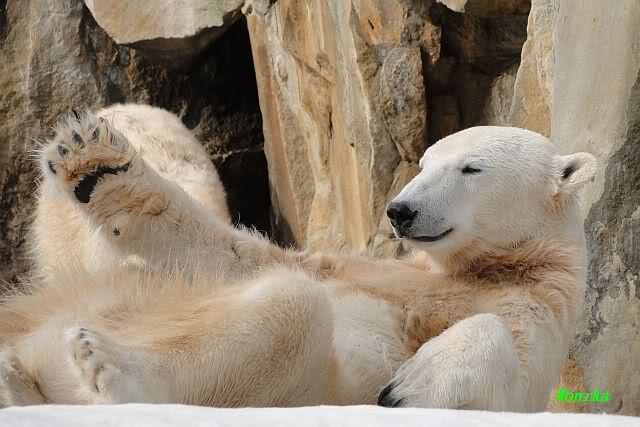 Übrigens Doris, Knut hatte gestern sehr schöne Träume von den beiden netten "Mädels", deren Namen mit U und M anfangen. Schau mal das Foto, er hatte heute morgen noch ein zufriedenes Lächeln auf dem Gesicht.
