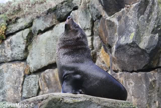 Nach der Fütterung von Knut lag Petzi hinten auf der Anlage aber Siddy bettelte um Futter. Sie bekam zwei Brötchen