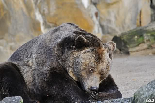 Am 19.11. habe ich Bernie zum letzten Mal gesehen. Jeden Tag die bange Frage, lebt er noch? Wie geht es ihm. Immer die gleiche Antwort, geht so, aber den Winter wird er wohl nicht überleben. Dann ein Hoffnungsschimmer. Er sollte noch eine Untersuchung gemacht werden. Ob sie je stattgefunden hat, weiß ich nicht. Nun musste er eingeschläfert werden. Seine Arthrose war zu weit fortgeschritten und die starken Medikamente sollen andere Organe angegriffen haben. Sein Leben soll nur noch eine Qual gewesen sein. Oft sahen wir in der letzten Zeit, wie er sich aus der Höhle quälte um pünktlich zur Fütterung zu kommen. Aber es gab keine mehr in den letzten Wochen. Die Bären seien jetzt nicht sehr hungrig und würden nicht mehr in die Höhle kommen wenn sie draußen gefüttert werden. Trotzdem immer wieder das gleiche Bild. Zur Fütterung sitzen sie alle drei da und warten. Manchmal brüllen sie und betteln. Selten genug gibt es doch mal einige Trauben oder einen Apfel, meistens nichts.