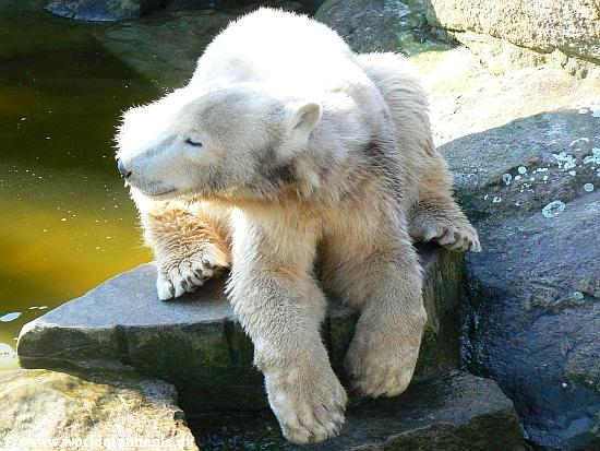 Das habe ich allerdings dann heute nachholen können. Bei herrlichem Sonnenschein war der Zoo voll wie in alten Tagen zu Zeiten der Knut Show. Die Aussagen wie *niemand besucht mehr Knut* oder *niemand besucht die anderen Tiere* wurden wieder aller Lügen gestraft. Großes Gedränge natürlich bei Knut, aber auch an den anderen Gehegen drängten sich die Besucher.