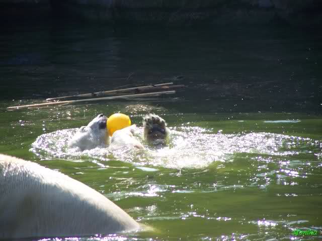 Übrigens, Gisela, beim 5. Bild von Dir könnte man denken, daß der eine Bär den gelben Ball versucht oder versucht hat, mit seinen Pfoten hoch zu werfen