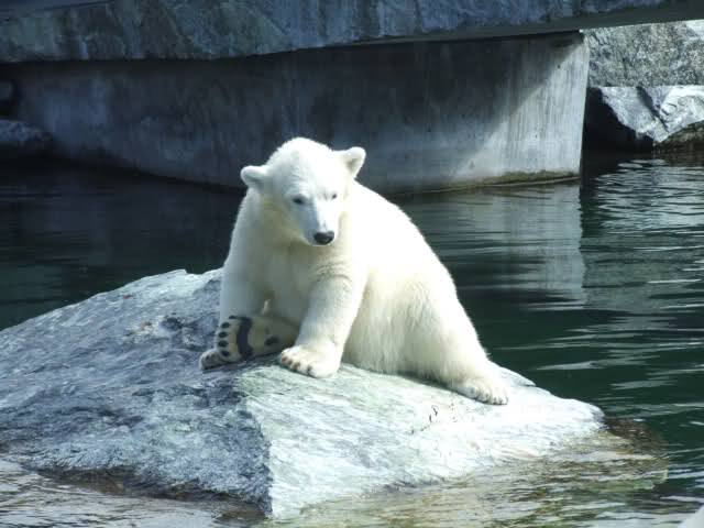 Wir waren kurz nach 09:00 Uhr bei Wilbär, da ist er mit Corinna im Wasser herumgetollt. Später hat er sich dann ausgeruht und wir haben eine Runde in der Wilhelma gedreht.