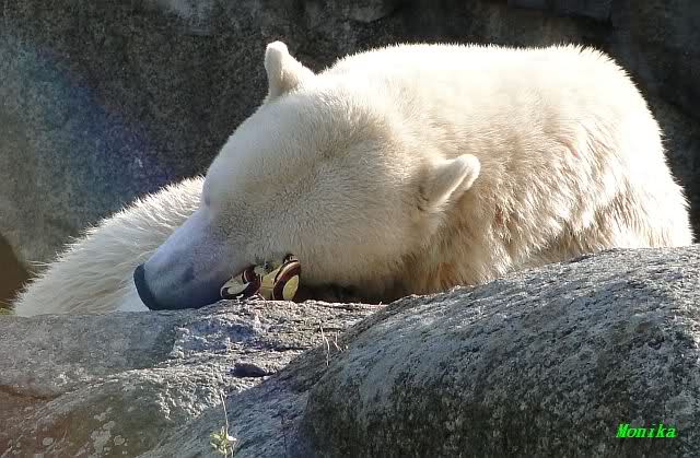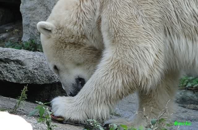Und Knut ? Der schlägt und beißt sich tapfer durch. Ob er glücklich ist ? Ich weiß es nicht. Ein zufriedener Bär sieht in meinen Augen anders aus. Die Zeit wird hoffentlich wieder einen zufriedenen Bären aus ihn machen.