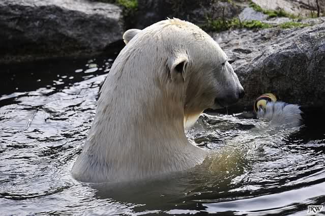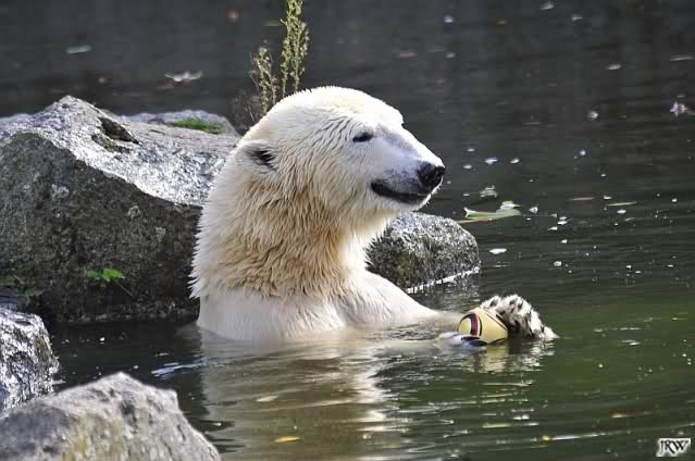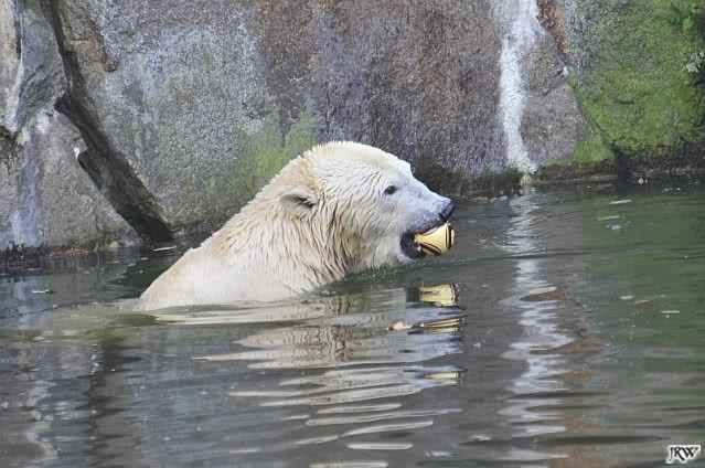 Especially if you would have seen Tosca today. Some extraordinarily smart (or so they think) people have said and are still saying that our grown polar bears do not play and never have played. Well, everybody saw the pictures. Wait until you see what happenend today. I will tell about it later and show the photos.