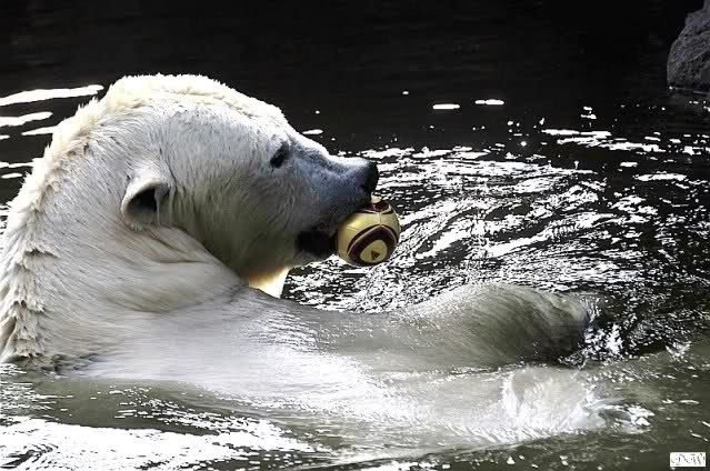 Ursula, mich wundert es nicht mehr, das sich auch Eisbären gerne mit zum Beispiel Spielzeug beschäftigen.