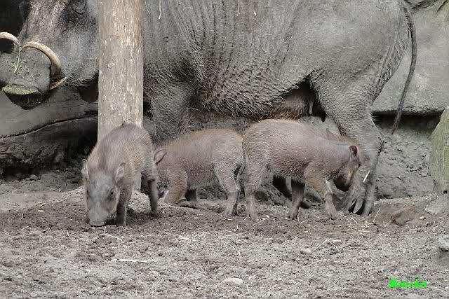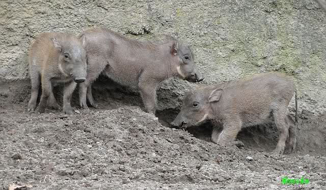 Es gibt aber auch noch schöne Augenblicke, wie zum Beispiel die 3 kleinen Warzenschweine. Sie sind schon ein ganzes Stück gewachsen, und rannten heute vergnügt über die Anlage.