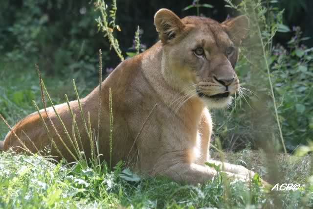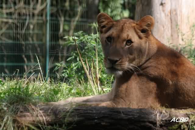 Zu den Löwen kommt man durche einen Tunnel unterhalb der Anlage. Durch ein Fenster kann man die Löwen auf Augenhöhe anschauen.