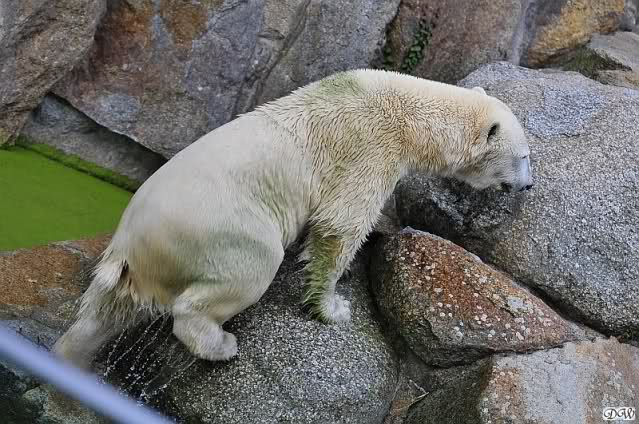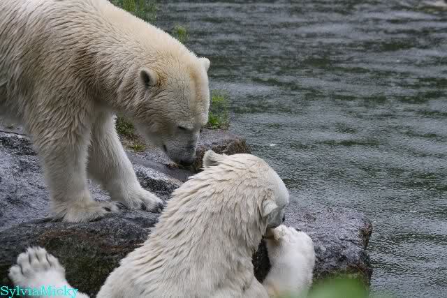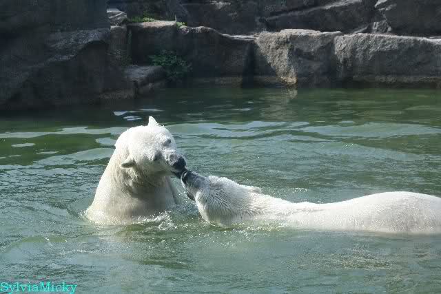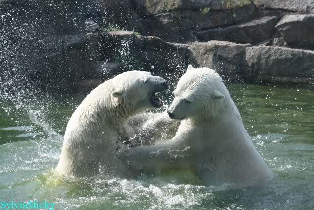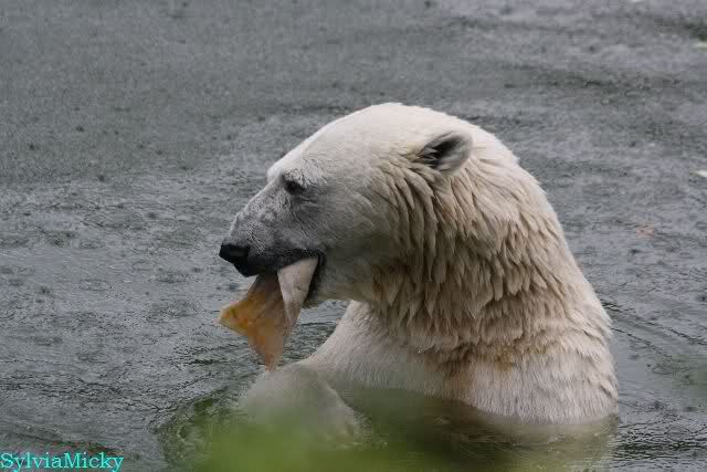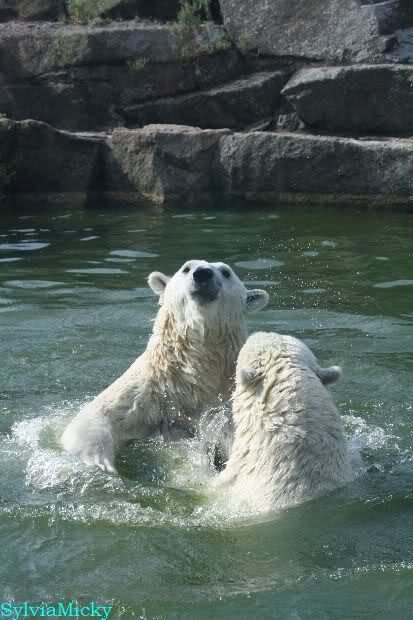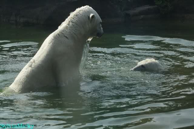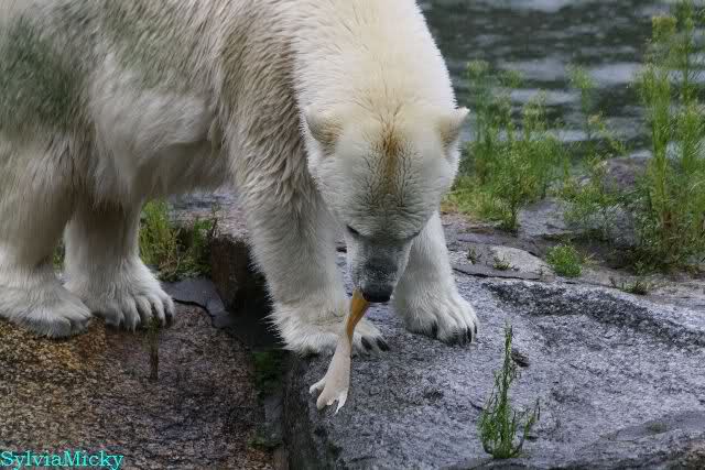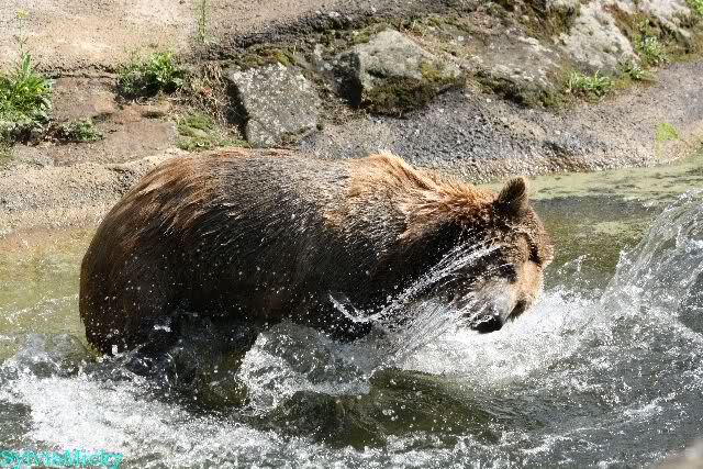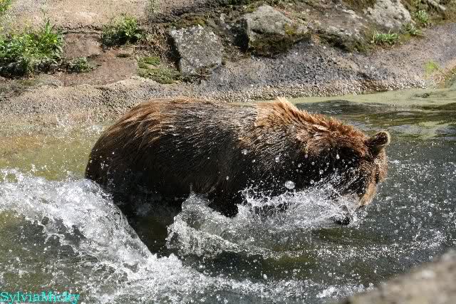 Danach haute sie mit der Pfote ständig aufs Wasser, daß es nur so spritzte.