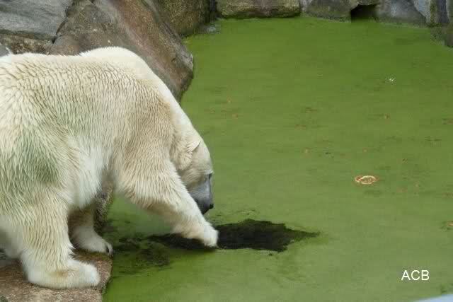 Tosca muß wohl in das grüne Gewässer eintauchen und...