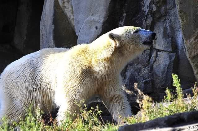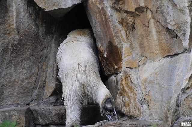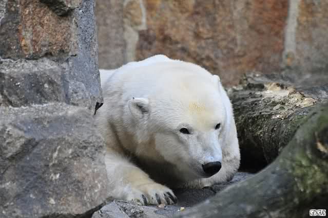 Und Knut ? Zwei Tage in Folge nicht auf *seiner* Anlage, kein Baumstamm mit dem man spielen kann, keine Besucher nach denen er immer schauen kann...Schwere Zeiten für den Eisbärenjungen.