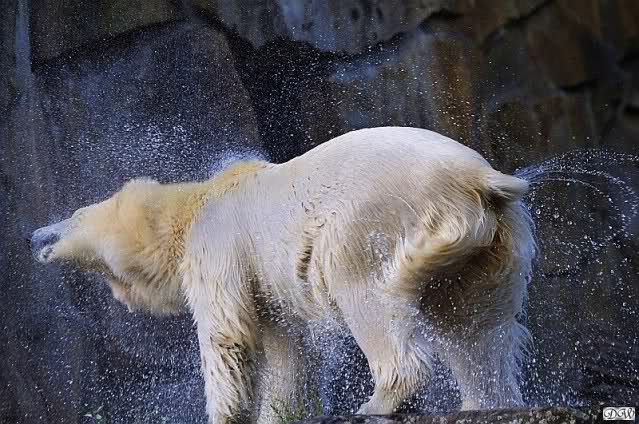nach dem Fitness-Studio noch schnell bei Knuti vorbeigeschaut. Meine Güte, die Gio ist ja wirklich flink drauf. Da muss man ja richtig schnell sein, um Fotos geschweige denn Filme machen zu können. Ein Rasseeisbärweibchen, da hat Knuti eine Superfrau an seinerr Seite. Mal sehen, wie das erste Date verlaufen wird.