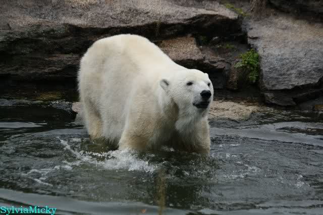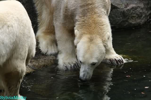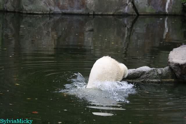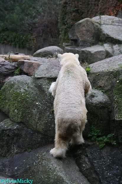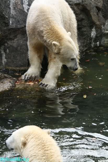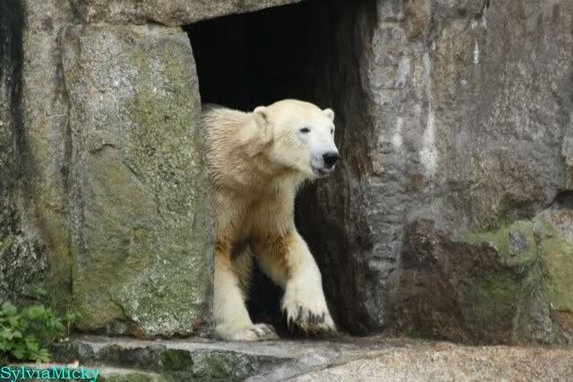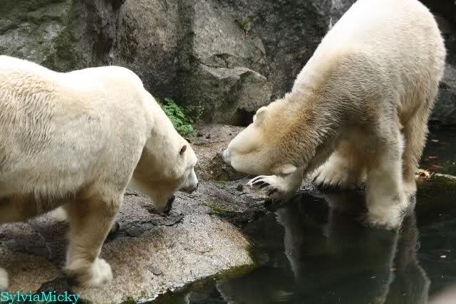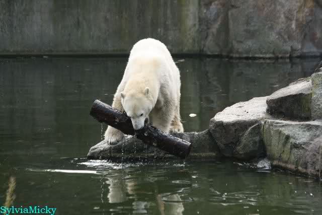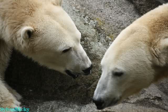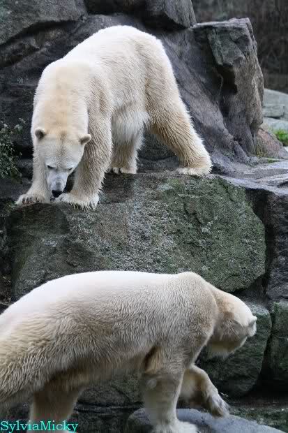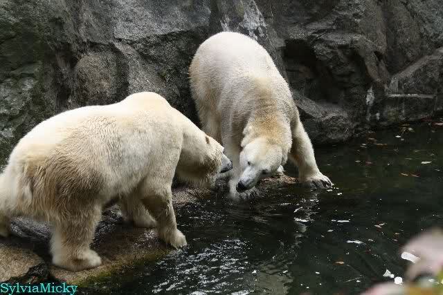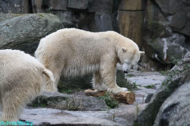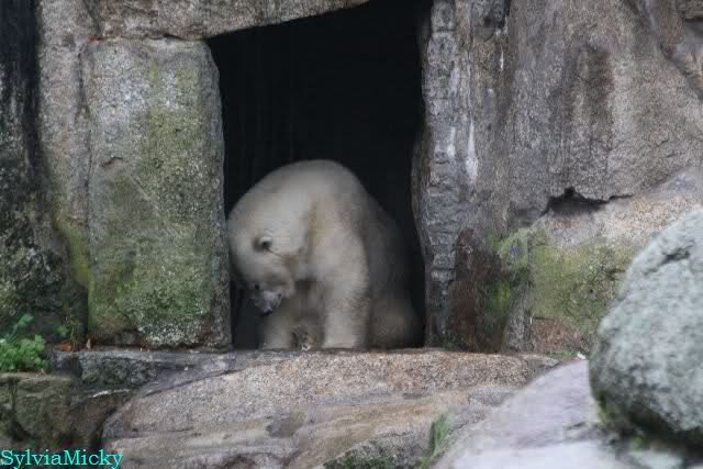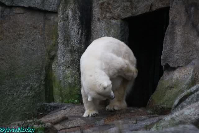 Hmmm, Action auf der Eisbärenanlage... Vielen Dank, Sylvia, für den heutigen Bericht und die Fotos vom Tage. Knut in Katis Höhle...langsam scheint sie es wohl zu dulden.