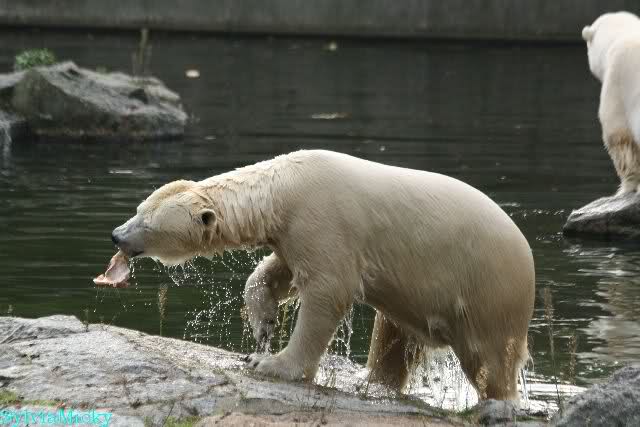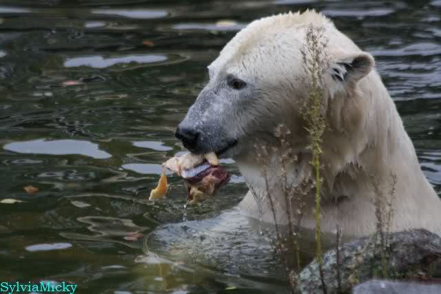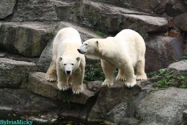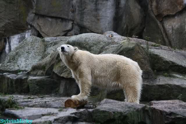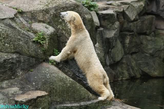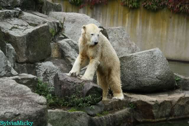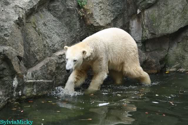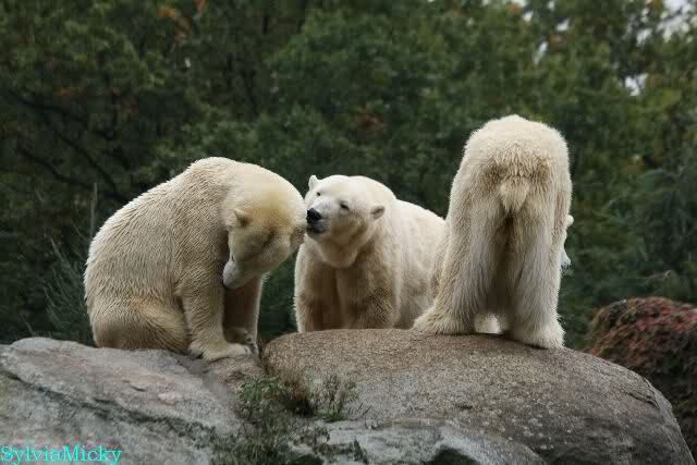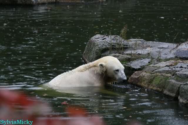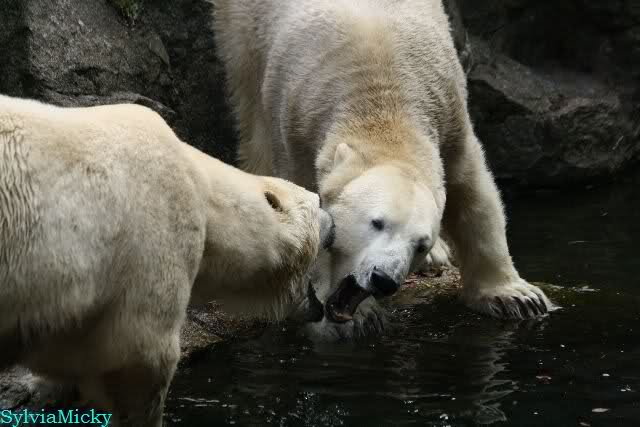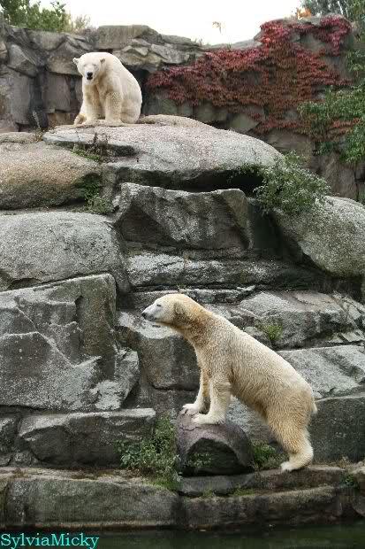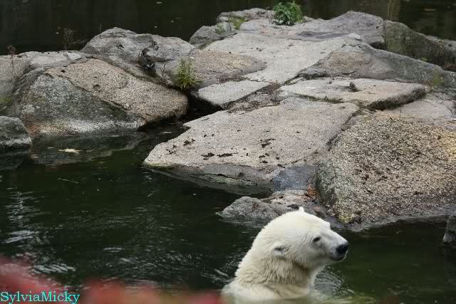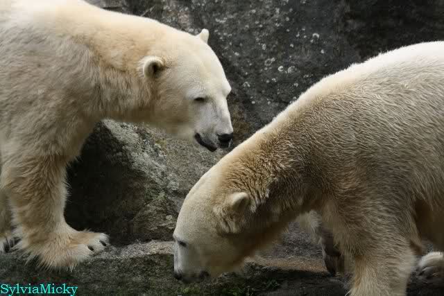 Hmmm, Action auf der Eisbärenanlage... Vielen Dank, Sylvia, für den heutigen Bericht und die Fotos vom Tage. Knut in Katis Höhle...langsam scheint sie es wohl zu dulden.