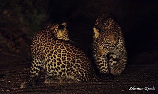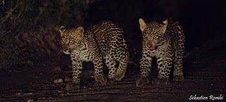Als im Westen die Sonne unterging fuhren wir zurück zum Camp und brachten das Fahrzeug an die Ladestation. Ich beschloss einen netten Freund in einer Nachbarlodge zu besuchen und auf dem Rückweg hatte ich das Glück Karula und ihren Jungen auf Gowrie Main zu begegnen die auf dem Weg Richtung Triple M. waren. Sie war sehr ruhig und ihre Jungen waren in spielerischer Laune … zum Glück hatte ich meine Kamera dabei und konnte so auch ein paar Bilder von ihnen machen. Ich entschuldige mich für die Qualität der Bilder, aber es war wirklich dunkel und die einzige Lichtquelle die ich bekommen konnte war von meinem Auto und ich wollte sie nicht blenden! Ich werde auch ein separates Album auf meinem öffentlichen Profil mit mehr Bildern von Karula und ihren Jungen hochladen!