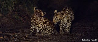 Sie erreichten die Straße die zu unserem Camp führte und verschwanden in der dichten Vegetation. Ich denke dass sie jetzt irgendwo hinter dem Camp sind und ich möchte zu gerne wissen wie lange sie letzte Nacht und heute zusammen waren! Mit ihrem Alter von nahezu 2 1/2 Jahren werden sie sich gegenseitig bald als Rivalen sehen, doch es ist auch so dass es zeigt, dass Blut dicker als Wasser ist. Eine Frage werde ich nie beantwortet bekommen, ob Mixo und Induna zusammen gejagt haben? Es wäre nicht das normale Szenario von Leoparden, doch das ist Natur und da ist alles möglich! Familienmitglieder von Leoparden sind bekannt, dass sie zusammen jagen, und das könnte gewesen sein was war. Es könnte sein, dass einer gejagt hat und der andere kam und die Reste nahm! Wer weiß! Wie immer es war, es ist wunderbar diese zwei Brüder wieder zusammen zu sehen!