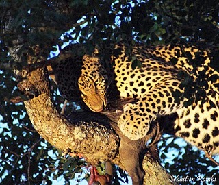 Es fing alles mit Karula an, die sehr ruhig auf der Mamba Straße war. Wir (Patrick und ich) verbrachten einige Zeit bei ihr bevor sie sich wegbewegte. Sie sah aus als wäre sie auf Jagd, nach ein paar Schritten blieb sie stehen und lauschte ein paar Minuten lang. Ein weiteres Fahrzeug wollte in Sicht kommen und so fuhren wir weg und Patrick beschloss zurück zum Treehouse Damm zu fahren wo Induna Beute in einem Baum gelagert hatte … Als wir dorthin kamen entdeckte Patrick (mit seinen Adleraugen) Induna im Gras liegend. Nach einigen Gähnern stand er endlich auf und machte sich auf den Weg zu seiner Beute (ein junges Warzenschwein). Wir beobachteten ihn, wie er den Baum hinaufkletterte und versuchte eine bequeme Lage zu finden um seine Mahlzeit zu beenden. Es gelang mir einige schöne Bilder zu machen, die ich auch in diesem Blog posten werde. Ich werde auch mehr von ihnen in einem separaten Album auf meinem öffentlichen Profil herunterladen.
