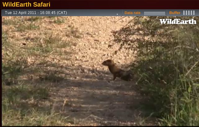 Für uns war es wegen eines Wassergrabens, hier donga genannt, nicht möglich ihr weiter zu folgen, sodass ich versuchte einen anderen Weg zu finden. Nachdem es in den letzten Tagen geregnet hat und ein Wildtierbeobachter im Schlamm nur einen Meter von der Straße weg, stecken geblieben war, war ich sehr vorsichtig! Wir nahmen den Weg vom selben Platz den ich kürzlich, als Induna dort war, zu nehmen versuchte, doch als wir das machten verblassen die Rufe der Eichhörnchen. Nachdem ich die Gegend jetzt kenne, wusste ich, dass es zu dicht war um eine Verfolgung zu versuchen, so ließ ich sie alleine!