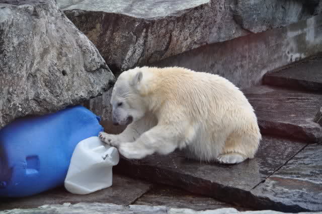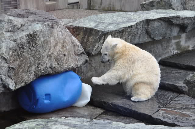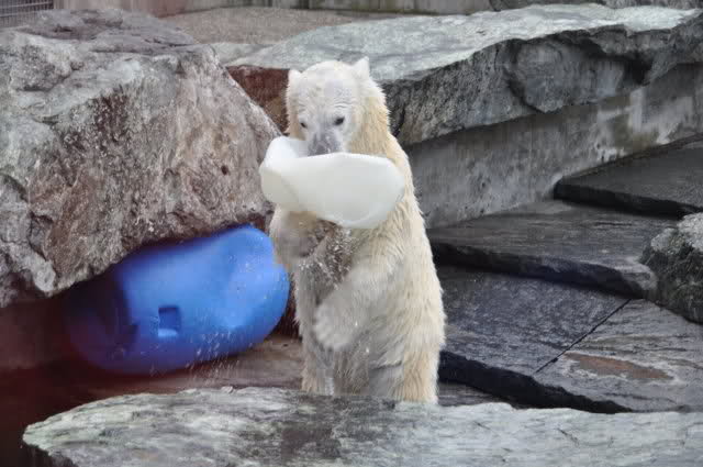 Uli, vielen Dank für die wunderschönen Fotos von Wilbär (und natürlich auch den anderen Bildern). Es ist einfach schön, einen Eisbärjungen so verspielt zu sehen. Mit einem einfachen Kanister kann man ihn so herrlich beschäftigen. Er bevorzugt also die Rückenlage, köstlich. Schwimmt er tatsächlich so, oder liegt er auf einem Felsen im Wasser ? Man kann sich an diesen Fotos nicht satt sehen.