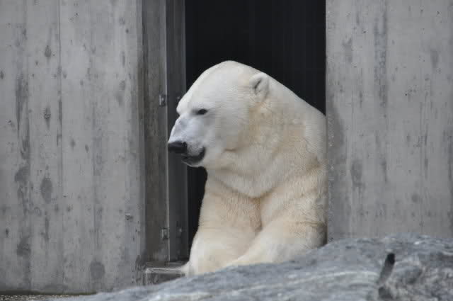 Ja, Corinna scheint wirklich zu genießen,wenn sich ihr Sproß allein beschäftigt! Sie hat ein richtig dichtes, gesundes Fell - eine propere Eisbärendame!