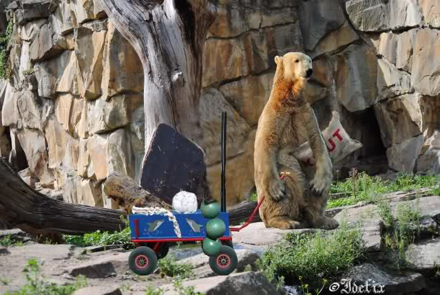 Gestern war ja nun ein besonderer Tag. Zum einen der Vortag von Knuts 45-Monats-Geburtstag, zu dem sich wieder viele auswärtige Knutfans angesagt hatten. Zum anderen sollte der erste Zoo-Besuch meines Enkelsohnes stattfinden und wenn sich zwei so wichtige Persönlichkeiten – nämlich Knut und Simeon – begegnen sollen, ist das schon sehr denkwürdig.
