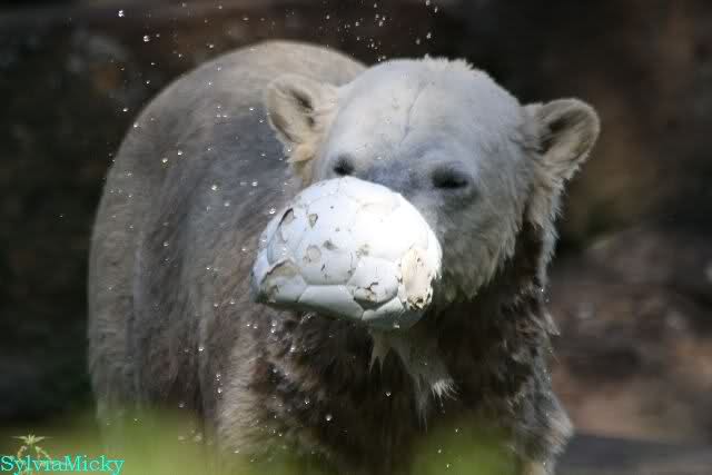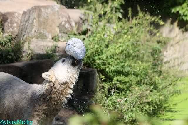 Knut spielte sehr zur Freude der Besucher mit ihnen Ball. Er war wieder in seinem Element.
