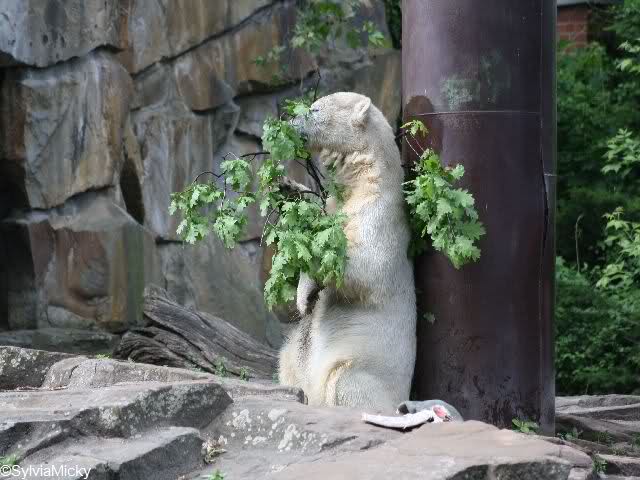 Von der neuen Pflegerin gab es auch einen neuen Zweig für Knut und die anderen Bären