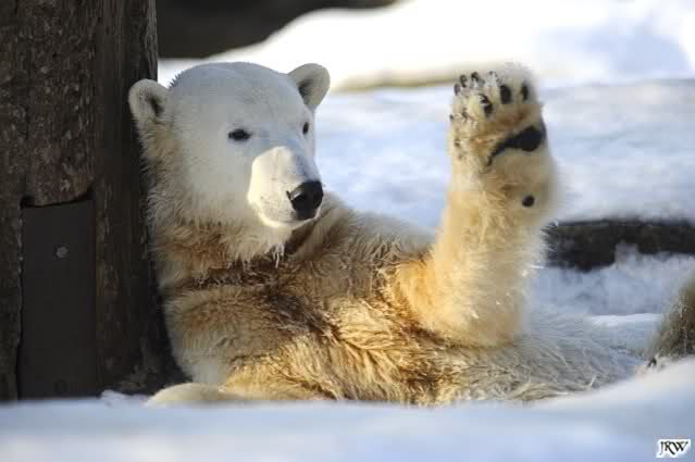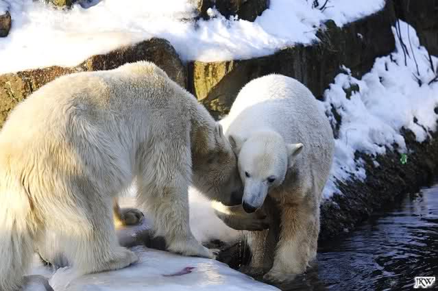 Ich poste gleich eine weitere Serie der beiden im Wasser spielenden Eisbärenkids. Fotos vom Sonntag Nachmittag.