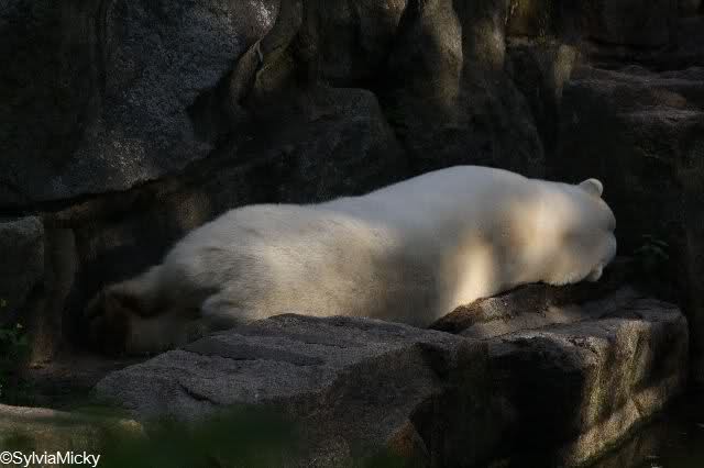 Was der Knut da drüben alles anstellt. Selbst mit nem Kinderschuh spielt der.