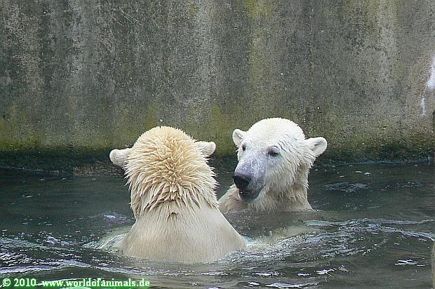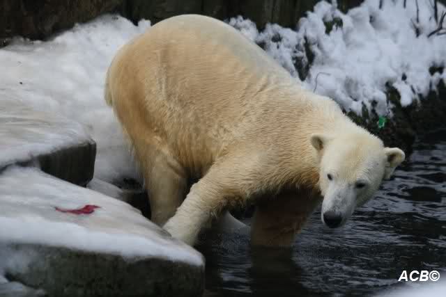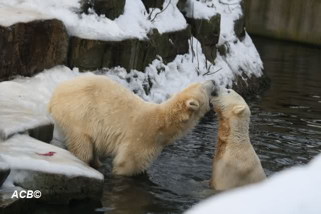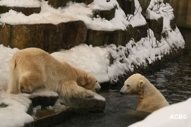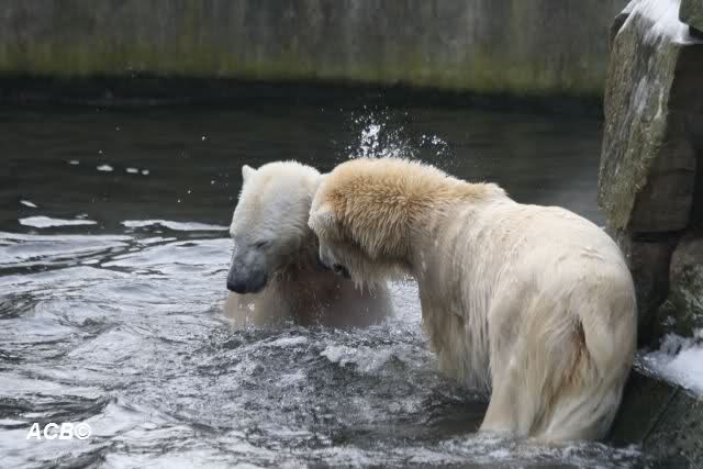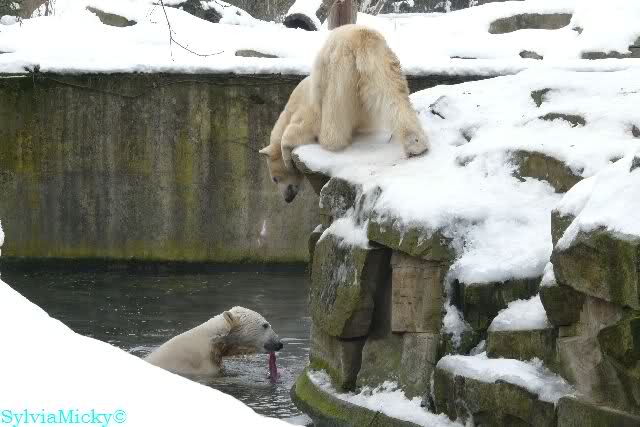 Good evening to you all Knut & Giovanna friends around the world at Sunday evening from Knut City. It was a very cold day again and so I want to thank our fotographers for their brand new pictures from our polar bear kids. The bears did play very crazy in the water at afternoon.