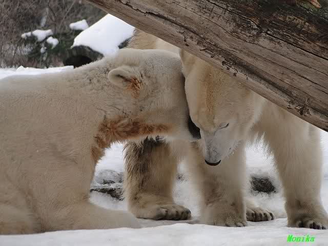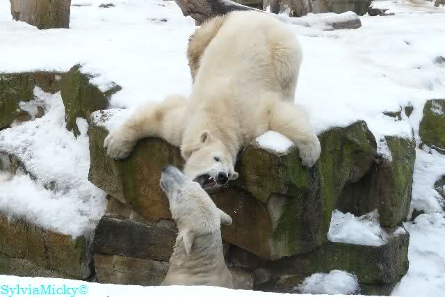 Für eine wie mich, die in der "Verbannung" aushalten muss, ist das natürlich wunderbar. Ach, diese Augen unserer beiden Eisbären-Teenager! Ja, ja, die erste Liebe.