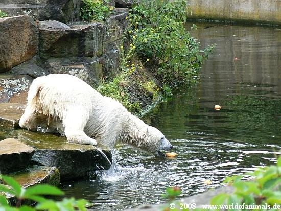 it was a hot and humid sunday. But Knut was in a very good mood and was playing in water many hours. He got his food from Markus Roebke, not so much today.