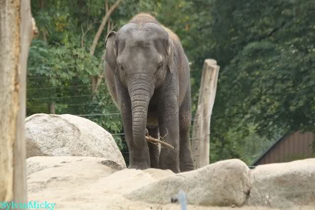 Die Elefanten hatten Beschäftigungsstöcklein. Shaina Pali warf ihn immer gegen die Wand, hob ihn auf, warf ihn gegen die Wand usw. usw. Wie schön