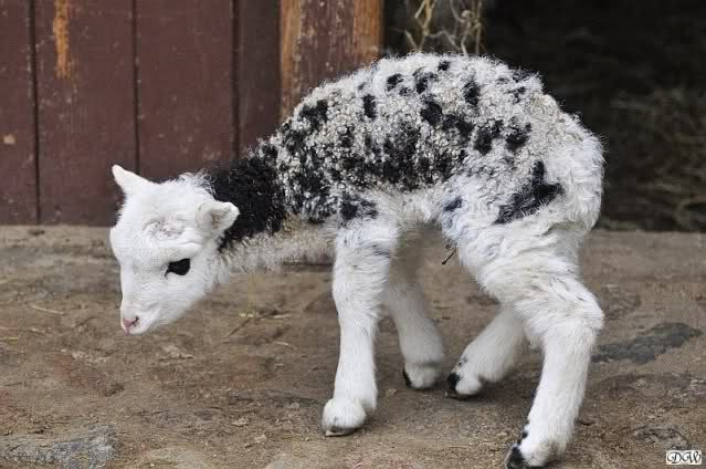 Und noch ein Lämmchen. Das Kleine muss heute erst geboren sein. Die Mutter war noch ganz blutig, und das Kleinen sah man noch die Nabelschnur.