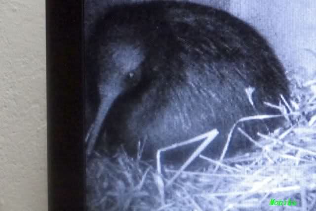 Der kleine Kiwi. Die Qualität ist nicht sehr gut, da man ihn nur auf dem Monitor durch die Scheibe fotografieren kann.