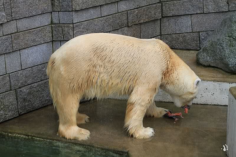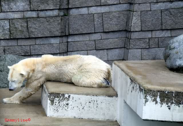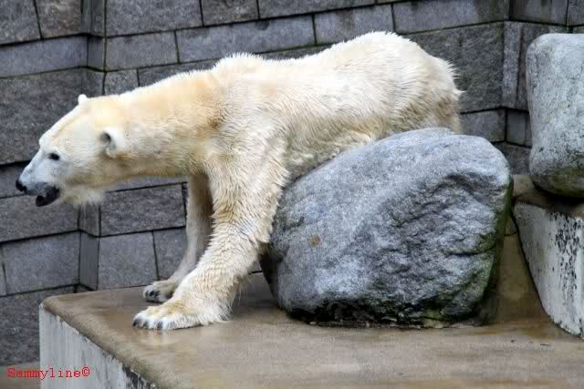 Da wird dauernd vor die Scheibe geklopft und dumme Sprüch zu mir und Vilma gerufen. Beispiele. Letzten Sonntag rief so ein alter Kerl: " Spring doch ins Wasser du dumme Sau". Nee, was ist der ungebildet. Ich bin ein deutscher Eisbär und kein Schwein. Ein Dauerbrenner ist auch der Spruch: "Beweg´ dich mal du alter Sack." Wenn ich dann die Gestalten sehe, die das rufen stelle ich immer wieder fest, dass ich mit meinen knackigen 17 Jahren viel jünger bin wie die und mit meinen Muskeln viel dynamischer aussehe.
