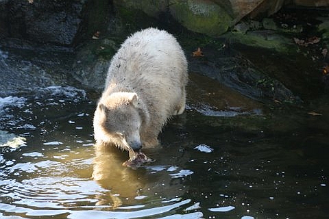 ..into the water...hmmm, meat.