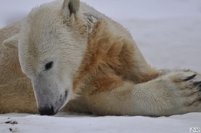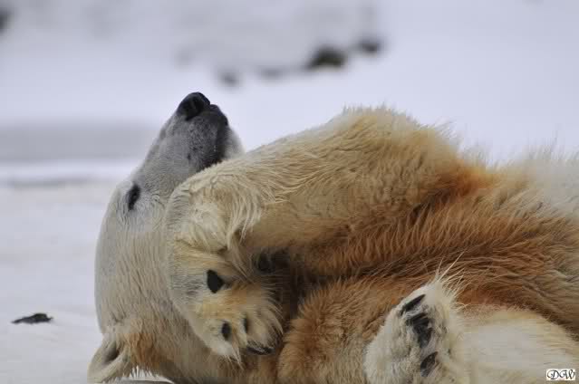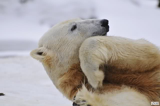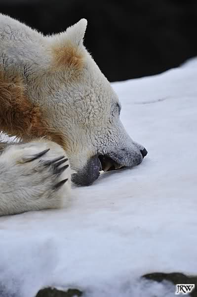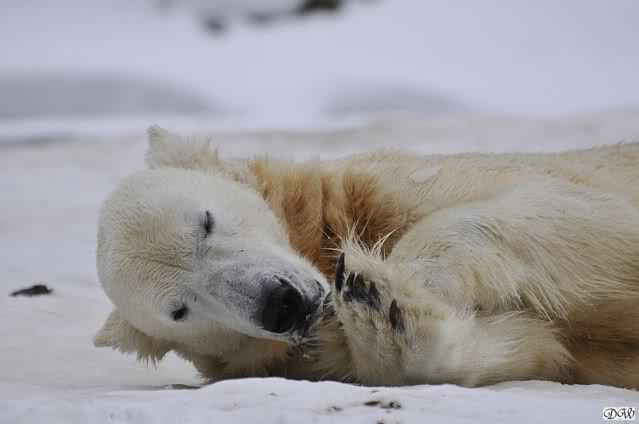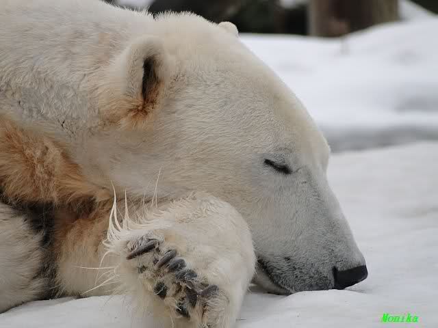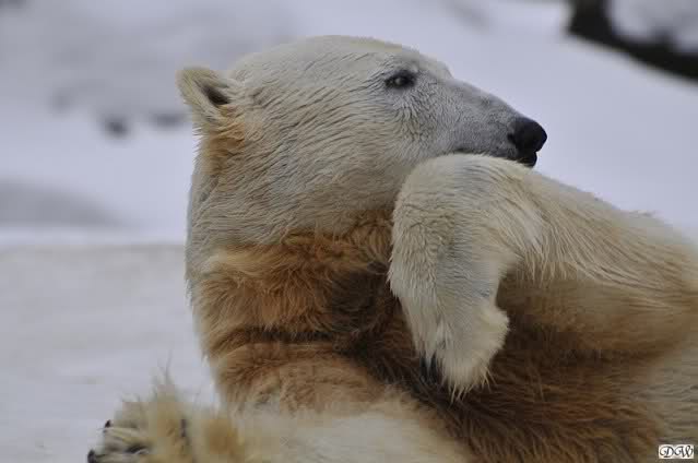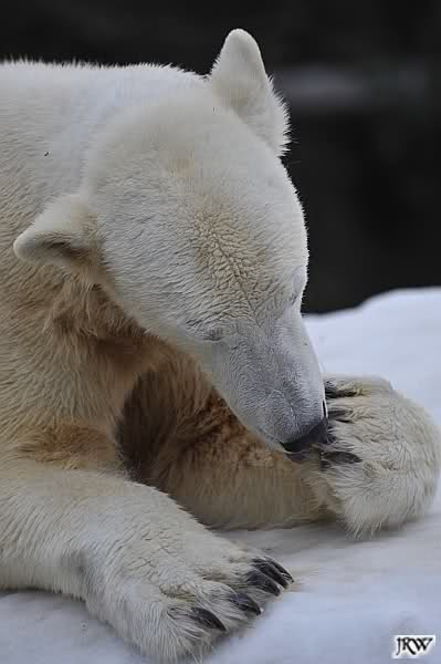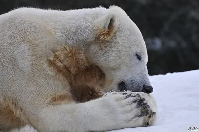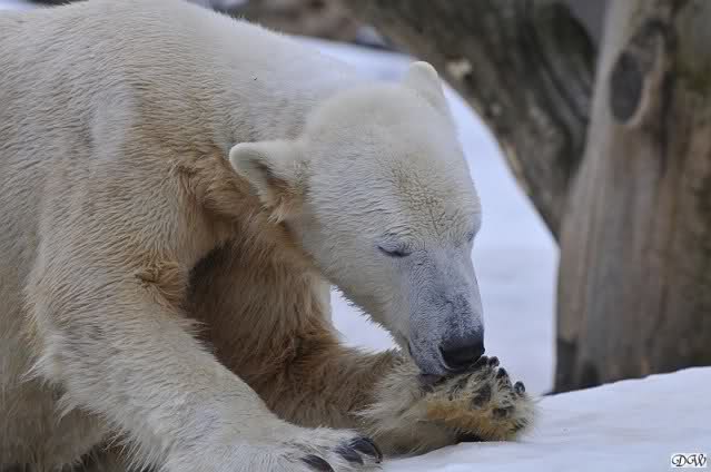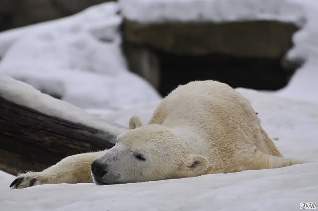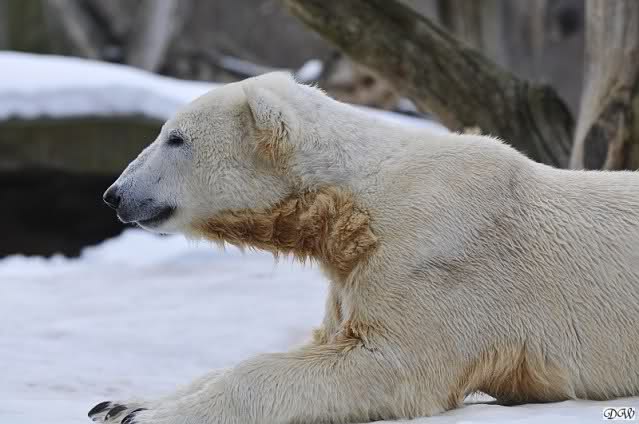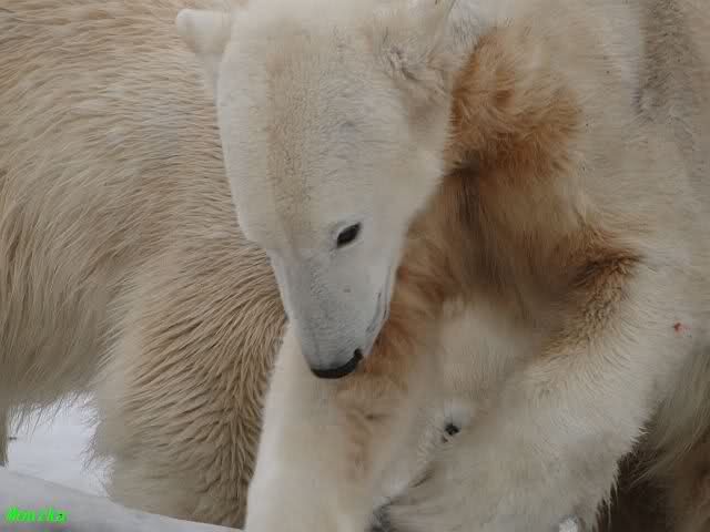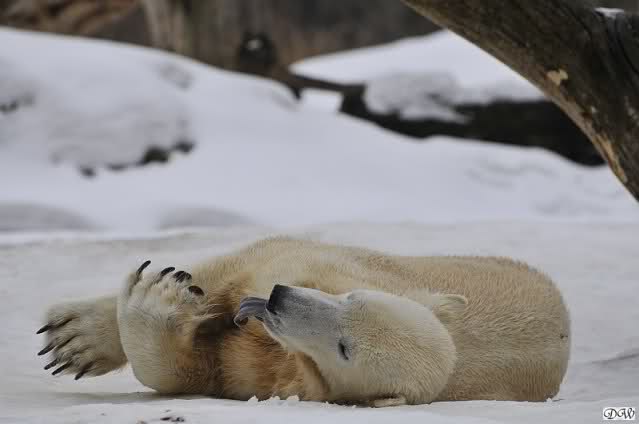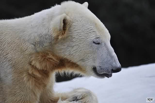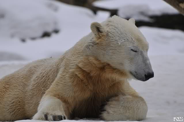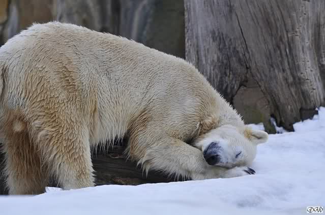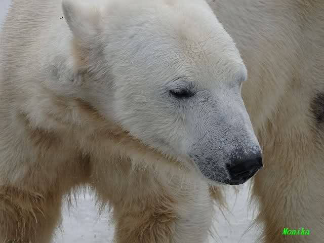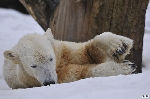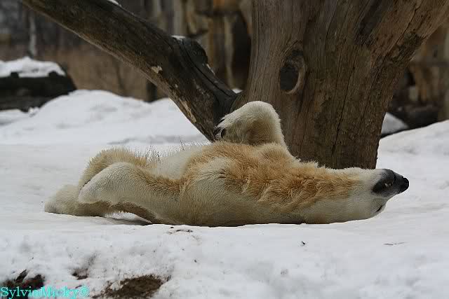 Bei den Eisbärinnen kuschelten Tosca und Nancy miteinander. Katjuscha war – wie so oft – außen vor. Aber vielleicht ist sie gern mal allein.