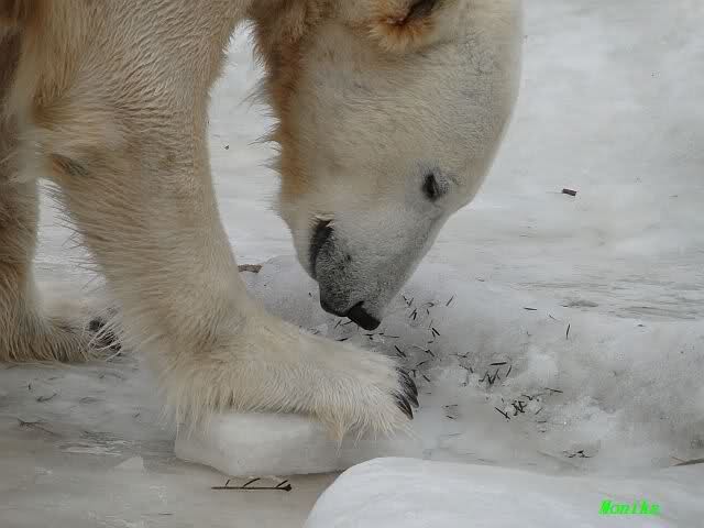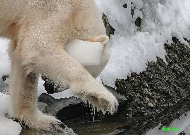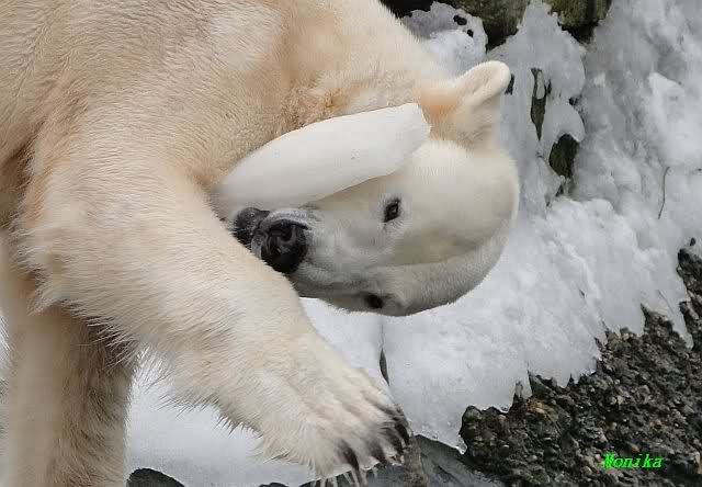 Knut spielte derweile mit einem Eisbrocken