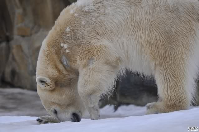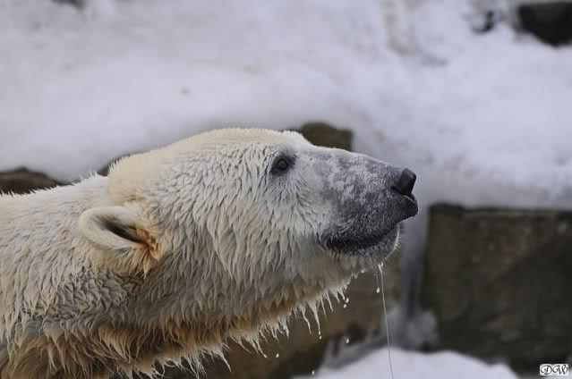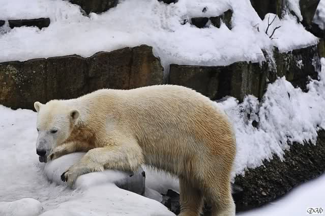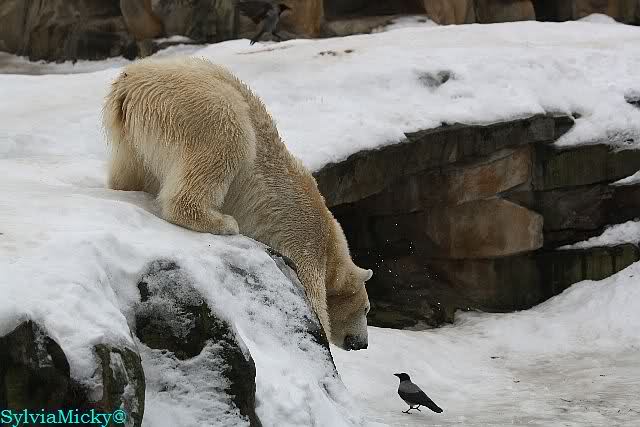 Ich drehte eine Runde durch den Zoo. Bei den Seelöwen war ein großes Theater. Enzo schrie laut und seine Damen schrieen zurück. Den kleinen Diego störte das nicht. Der lag am Ufer und wühlte mit seinem Näschen in einem Schneehaufen herum.