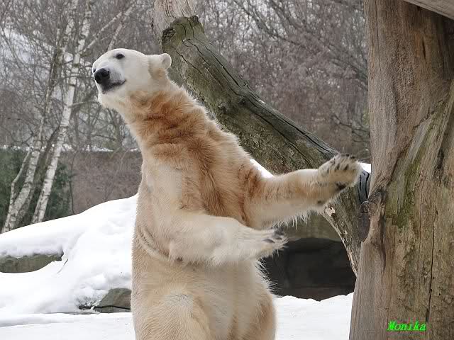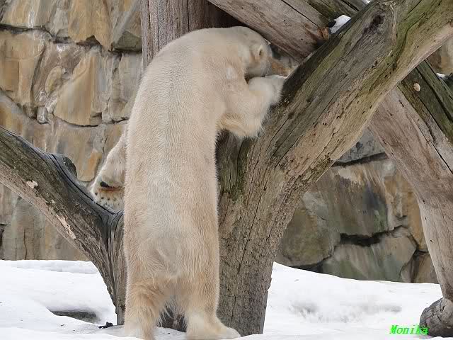 Als ich ankam, stand Knut auf den Hinterbeinen neben dem Baum und streckte sich. Meine Güte, so ein großer Bär! Diese Vorstellung wurde von den Besuchern gebührend bewundert.