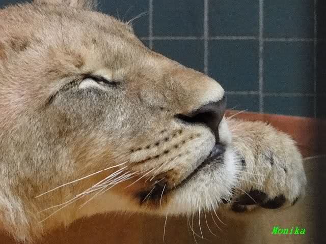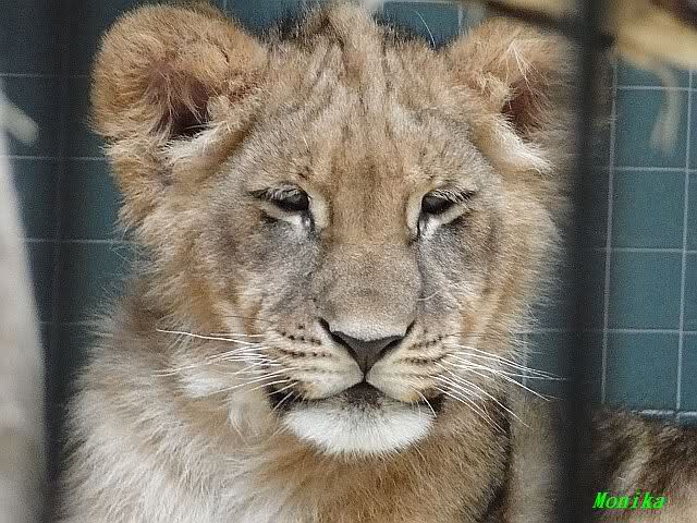 Die inzwischen mächtig gewachsenen Löwenkinder tobten gemeinsam im Käfig.