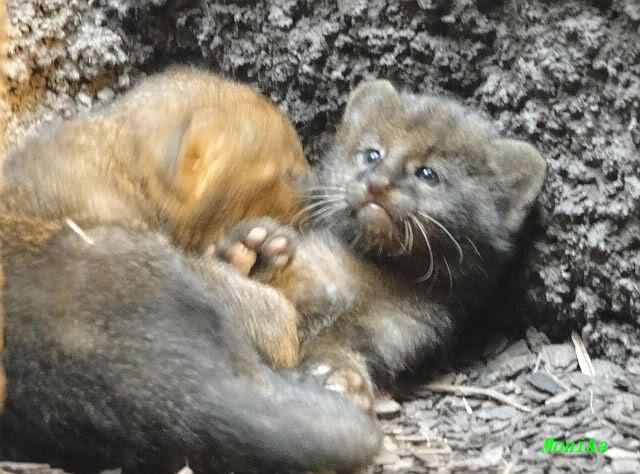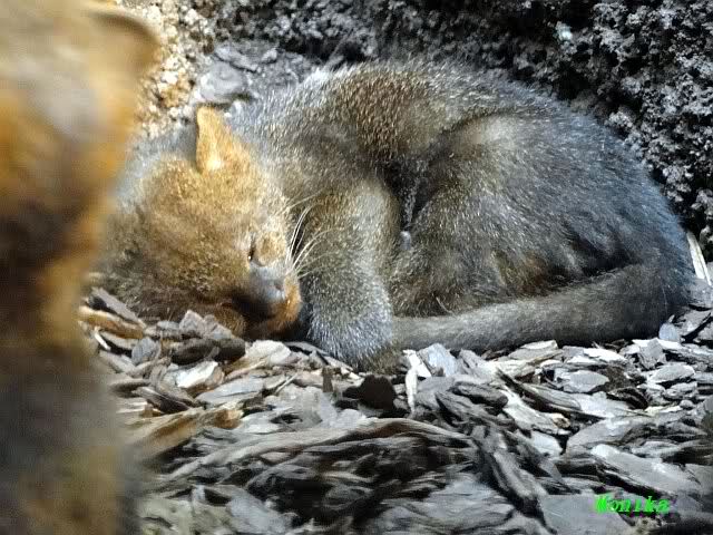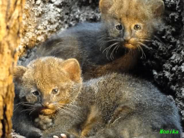 am 24.01.2011 wurden die beiden kleinen Jaguarundis geboren. (leider schlechte Lichtverhältnisse zum fotografieren)