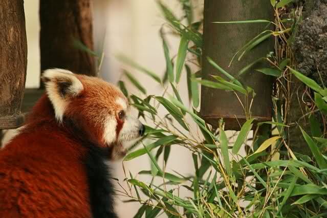 Als Ausgleichsnahrung legt Pfleger Kurt Nielsen auch oft Gemüse und Obst in den Stall. Und weil die Roten Pandas keine Kostverächter sind, gibt es manchmal auch Fleisch, kleine Küken, Mäuse oder Ratten. „Derzeit schaut Eugenio seinen Eltern noch gespannt beim Essen zu“, berichtet Zoo-Sprecherin Petra Schwinn.