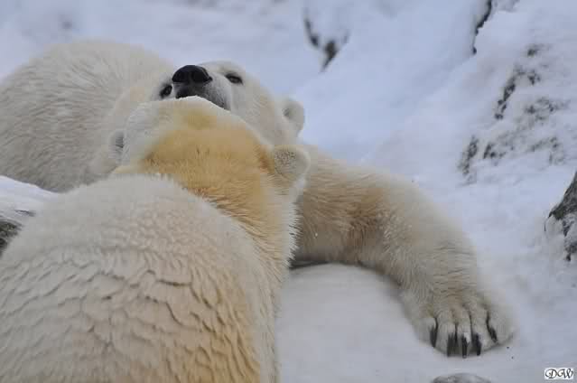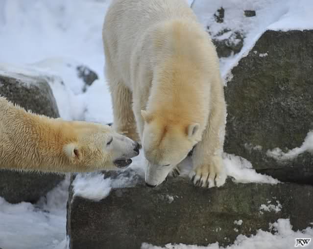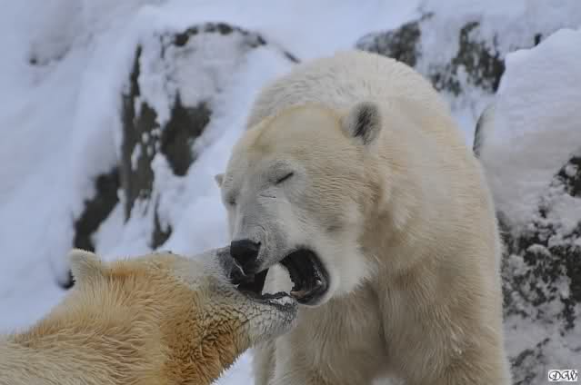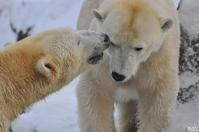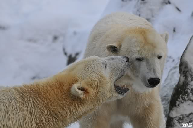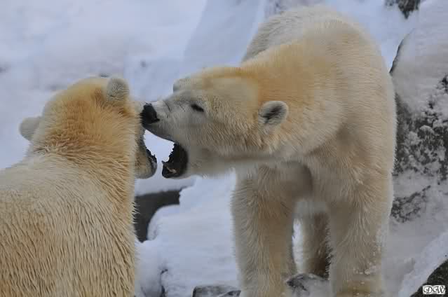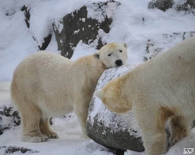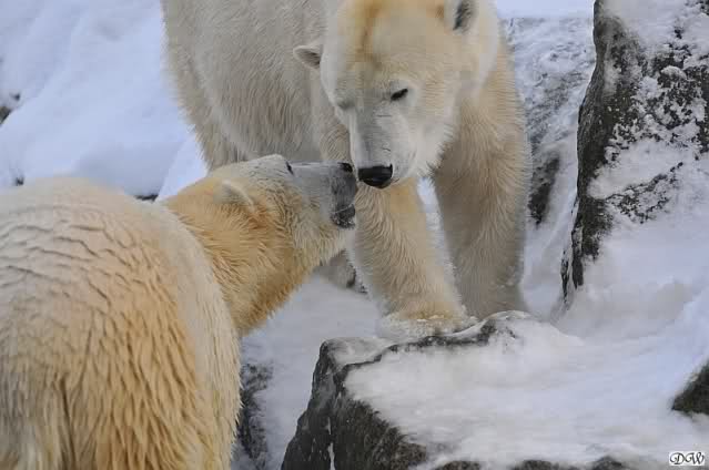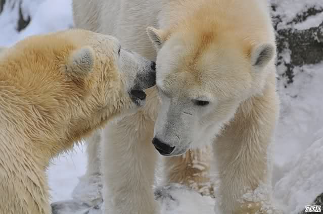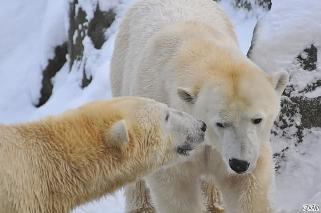 Monika, dann kann Nancy ein Ohr haben und Knut das andere. Stell Dir das mal vor. Die Drei auf dem Felsen und Tosca hat an jedem Ohr einen Eisbären hängen. Tolle Vorstellung!!