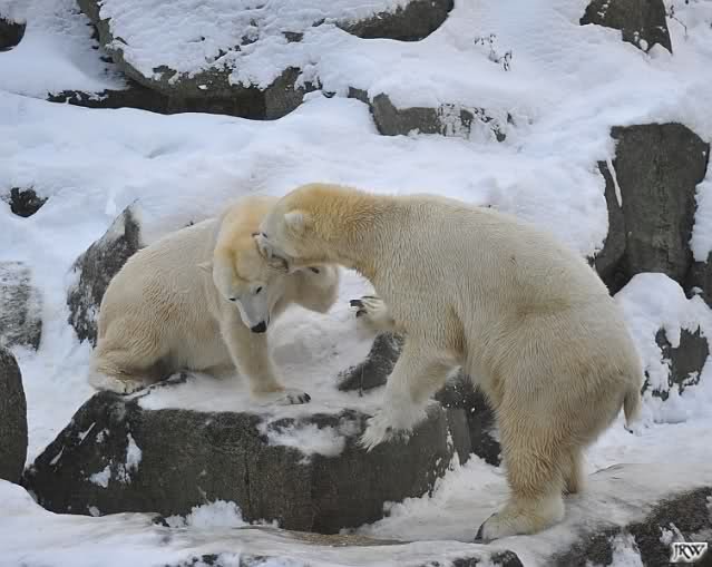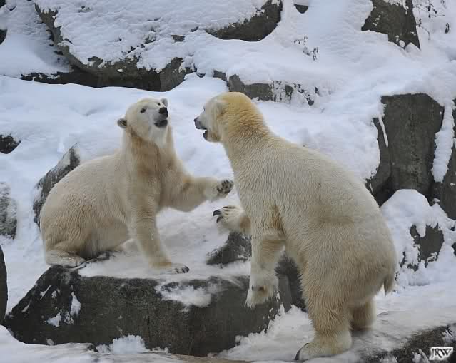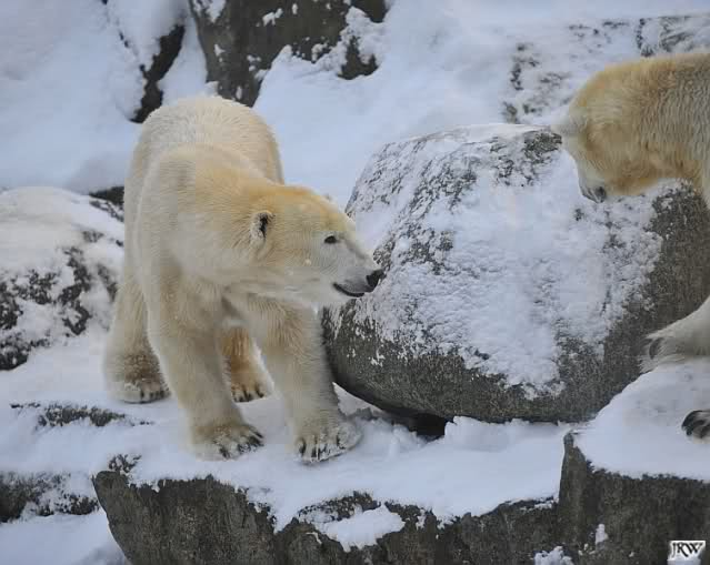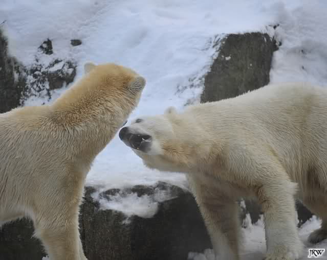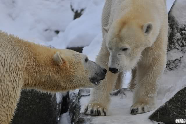 Das sind die Fotos, auf die wir so lange gewartet haben, Doris. Bei Giovanna hat es 75 Tage gedauert, jetzt ein bischen länger. Egal, die erste Eisbärenfreundschaft auf der großen Anlage scheint gefestigt. Mal sehen wie es weiter geht.