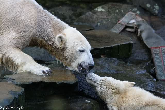 Ich habe erstmal alle neuen Fotos genossen. Einfach herrlich. Das Eis ist wohl endgültig zwischen den beiden Bärenkids gebrochen. Giovanna verdreht unserem Knut sogar die Augen . Mit den ganzen Fotos lässt sich der Feierabend noch mehr genießen. Auch danke für die Videos.