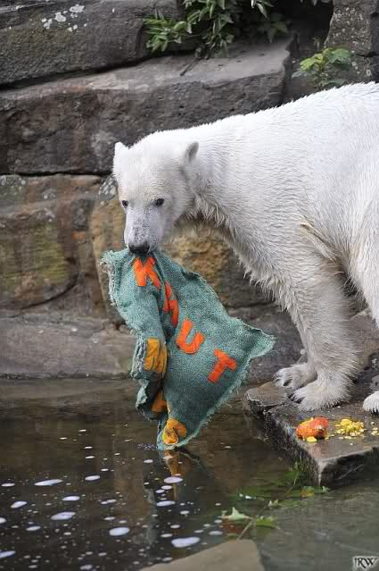 Hello to you all Knut friends around the world. It´s friday evening here in Knut City. Today it was Knut´s 30 Month *birthday* and many people did visit him. He got many gifts. Look to the pictures from today.