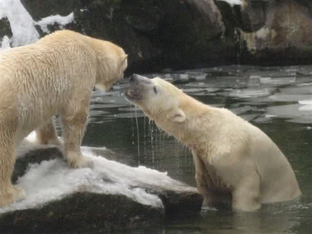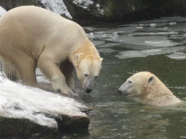 Was für ein Tag neigt sich heute dem Ende zu. Die heutigen Aufnahmen (Dank an die Knutfreundin) aus dem Zoo sind schon als sensationell zu bezeichnen. Tosca und Knut spielend im Wasser. Menschlich würden wir sagen: Mutter und Sohn toben im Wasser herum.... Aber wir sind bei den Eisbären.
